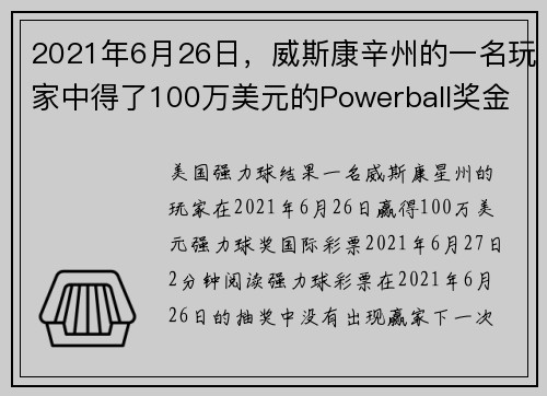 2021年6月26日,威斯康辛州的一名玩家中得了100万美元的Powerball奖金。